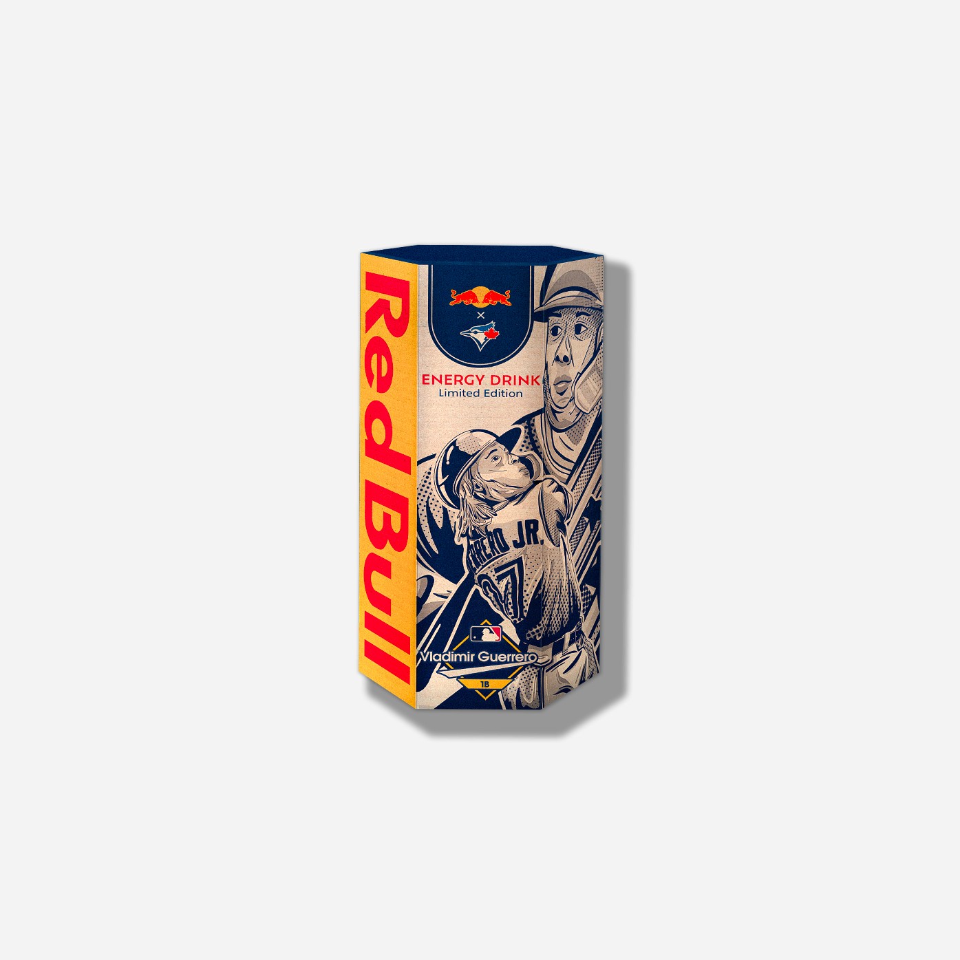 A packaging project commemorating the Blue Jays return to the World Series, featuring a limited edition Red Bull case.